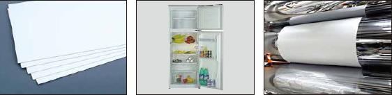 ABS、HIPS/GPPS冰箱板 Refrigerator board 主要用于冰箱冰柜門膽、內膽、抽屜、接水盤、飲水機等。 ABS/PMMA復合潔具板 Sanitaryware plate 用...